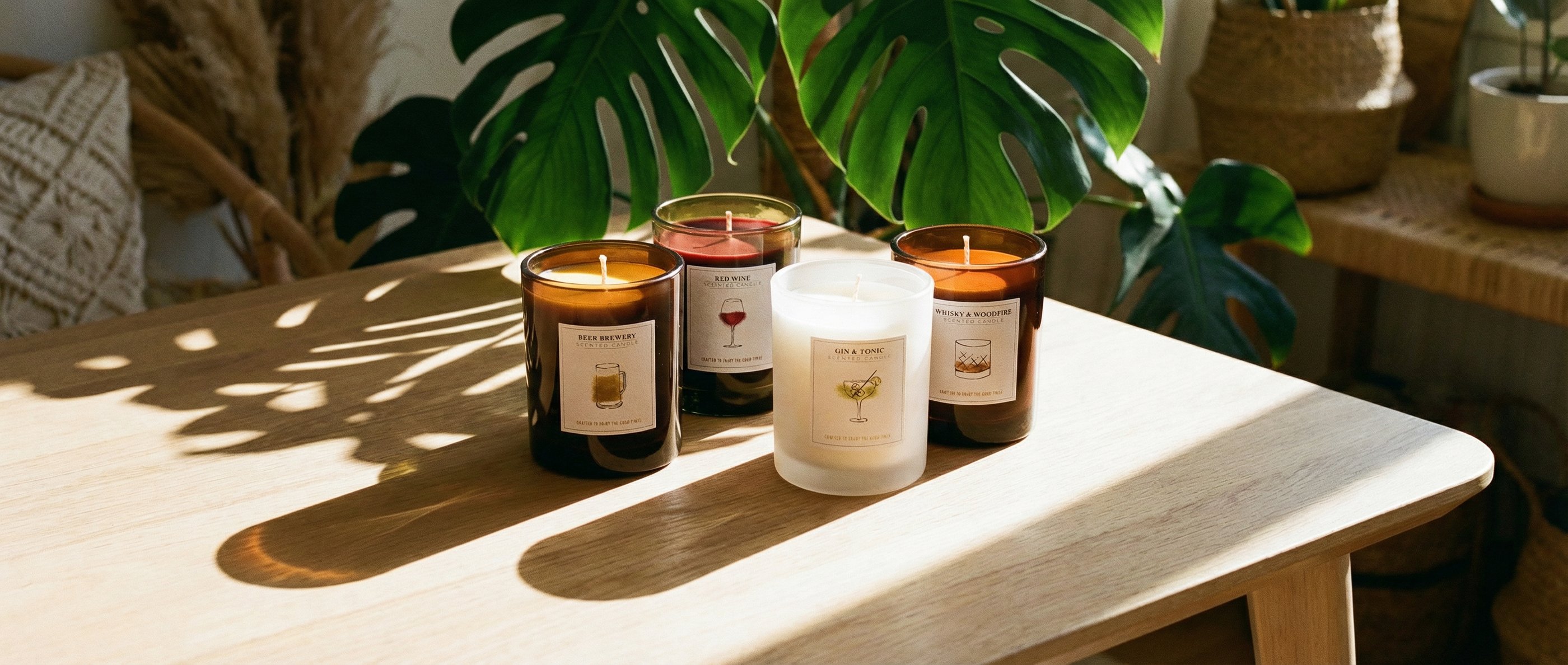 We craft handmade scented candles inspired by life’s good times: Whisky & Woodfire, fresh Gin & Tonic, fruity Red Wine, and cozy, malty Beer Brewery aromas.